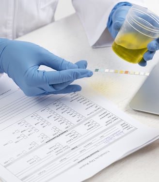 A urine sample is collected under strict guidelines to ensure accuracy and prevent tampering. The sample is then sent to a certified lab for analysis.